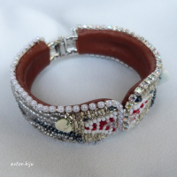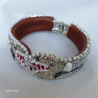 Браслет жесткой фиксации, вышитый бисером, бусинами и стразовыми лентами.