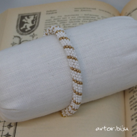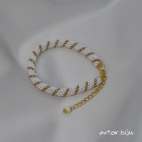 Браслет из бисерного жгута, двухцветный: белый, золотистый. С подвеской - бусиной белого агата.