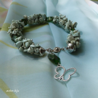 Браслет из натурального говлита под бирюзу (каменная крошка) с чешскими гранеными бусинами и подвеской в форме бабочки