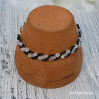 Браслет из черного бисера и хрустальных бусин.