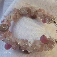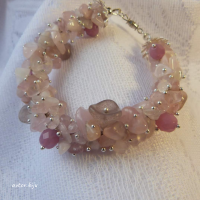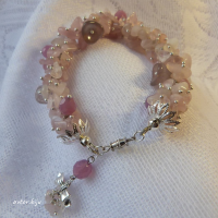 Браслет из розового кварца с чешскими бусинами (гранеными и в форме цветочка)