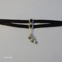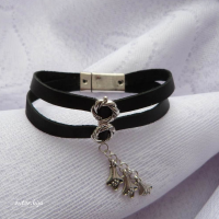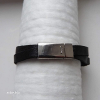 Браслет на руку из двух кожаных полосок из мягкой кожи черного цвета с подвеской в виде трех маленьких лилий