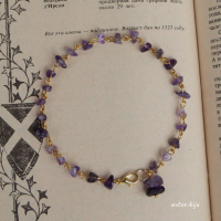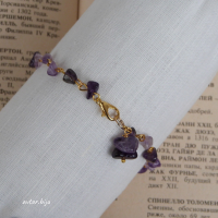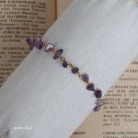 Браслет на ногу (анклет) из натурального аметиста с подвеской из нескольких бусин этого же камня