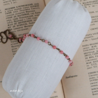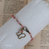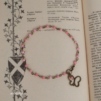 Браслет на ногу (анклет) из натурального розового коралла с подвеской в форме бабочки.