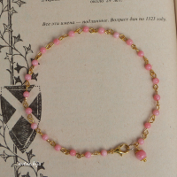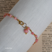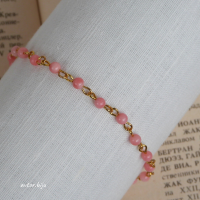 Браслет на ногу (анклет) из натурального розового коралла с подвеской из бусины этого же камня