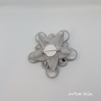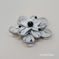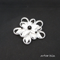 Брошь из натуральной кожи белого цвета в форме цветка с бусинами натурального черного агата. Застёжка с фиксатором.
