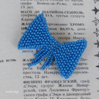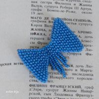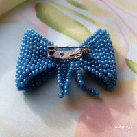 Брошь из бисера в форме бантика изготовлена в технике кирпичного плетения из чешского бисера