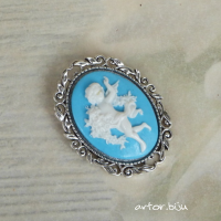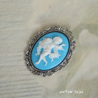 Брошь с вставкой-камеей из полимерной глины с изображением ангела