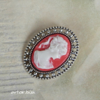 Брошь с вставкой-камеей из полимерной глины с изображением женского профиля