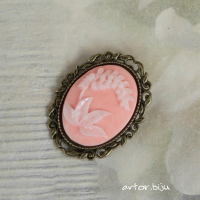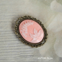 Брошь с вставкой-камеей из полимерной глины с изображением ландыша