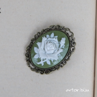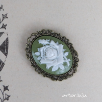 Брошь с вставкой-камеей из полимерной глины с изображением цветка розы