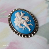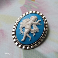 Брошь с вставкой-камеей из полимерной глины с изображением бегущего ангела и цветов