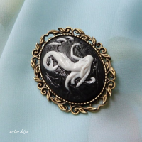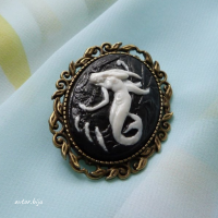 Брошь с вставкой-камеей из полимерной глины с изображением русалки