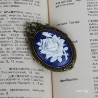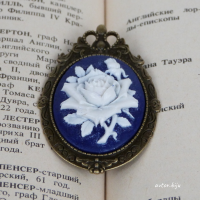 Брошь с вставкой-камеей из полимерной глины с изображением розы