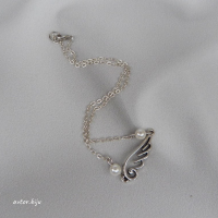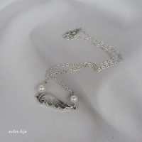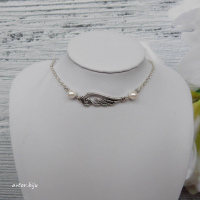 Чокер на тонкой цепочке с подвеской-крылом и двумя перламутровыми бусинами