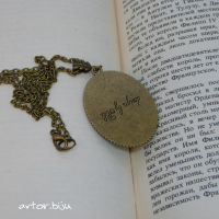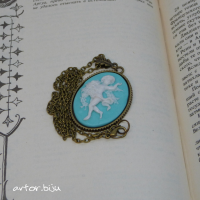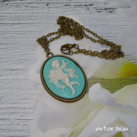 Кулон-камея из полимерной глины с изображением бегущего ангела, цвет фона - мятный