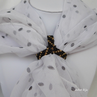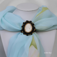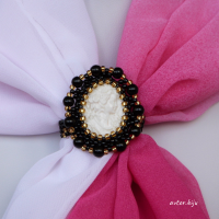 Кольцо из бисера и агата с камеей с изображением женского профиля для фиксации шейного платка, в форме красивой броши.