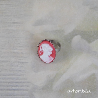 Кольцо с вставкой-камеей из полимерной глины с изображением женского профиля