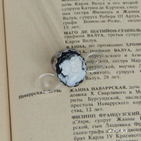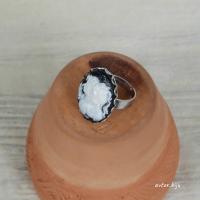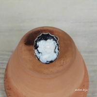Кольцо с вставкой-камеей из полимерной глины (два женских профиля), фон - черный