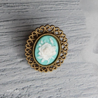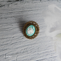 Кольцо с вставкой-камеей из полимерной глины (роза), фон - мятный
