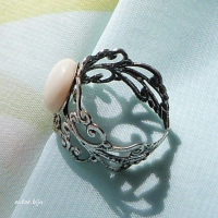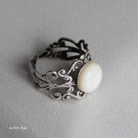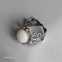 Кольцо с вставкой из тонированного перламутра, ажурное