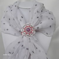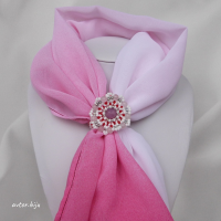 Кольцо из бисера с натуральными камнями и чешской бусиной в центре для фиксации шейного платка, в форме красивой броши.