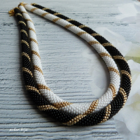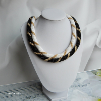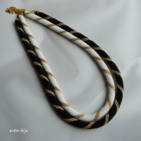 Колье из бисера двухцветное - белое и черное. Двухрядное, с добавлением бисера золотистого цвета.