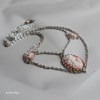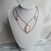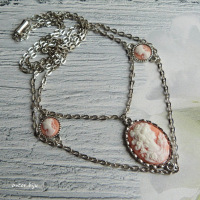 Многорядное колье из цепочек "под серебро" с камеями из полимерной глины с изображением женского профиля