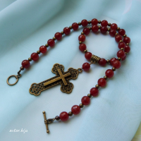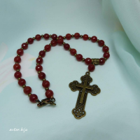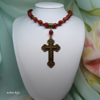 Колье из натурального тонированного кварца, с подвеской-крестиком.