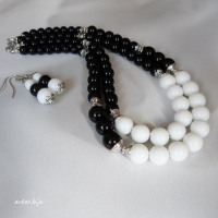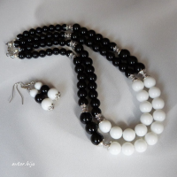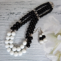 Серьги с натуральным агатом белого и черного цвета (бусины)