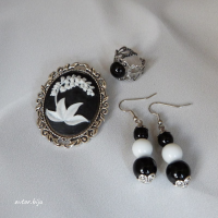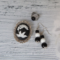 Брошь с вставкой-камеей из полимерной глины с изображением цветущего ландыша