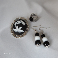 Серьги с натуральным агатом белого и черного цвета (бусины)