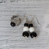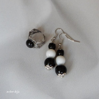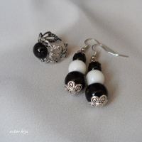 Серьги с натуральным агатом белого и черного цвета (бусины)