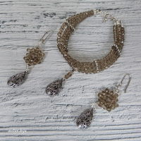 Комплект украшений из хрустальных бусин (браслет серьги)