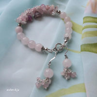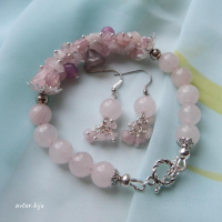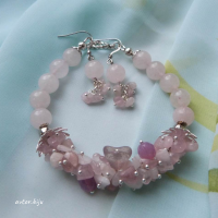 Браслет из розового кварца (бусины и крошка) с чешскими бусинами (гранеными и в форме цветочка)