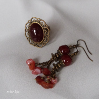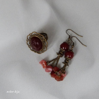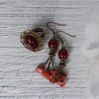 Комплект украшений из натурального сердолика (кольцо и серьги)