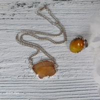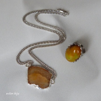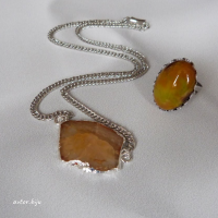 Комплект украшений с желтым агатом (колье-цепочка кольцо)