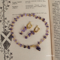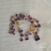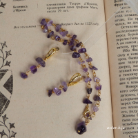 Браслет на ногу (анклет) из натурального аметиста с подвеской из нескольких бусин этого же камня