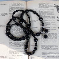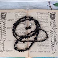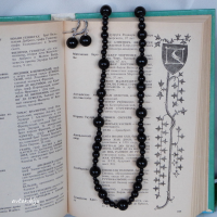 Комплект из натурального черного агата - длинные бусы и серьги.