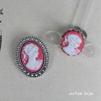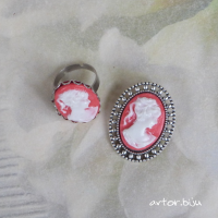 Комплект украшений с камеями с изображением женского профиля (брошь кольцо)