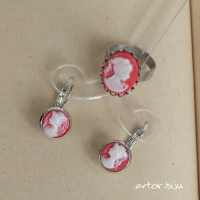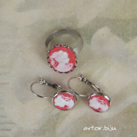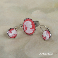 Комплект украшений с камеями с изображением женского профиля (кольцо серьги)