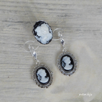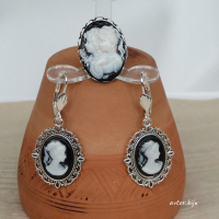 Комплект украшений с камеями с изображением женского профиля (кольцо серьги)