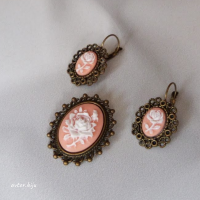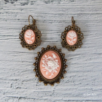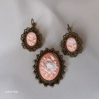 Брошь с вставкой-камеей из полимерной глины с изображением розы