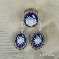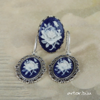 Комплект украшений с камеями с изображением цветка розы (кольцо серьги)