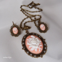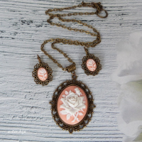 Кулон-камея из полимерной глины с изображением розы, фон - персиковый