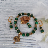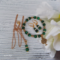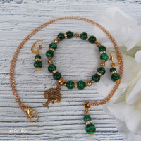 Комплект украшений с малахитом (кулон, браслет и серьги) под золото