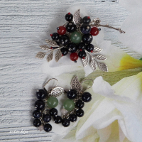 Брошь с бусинами натурального авантюрина и тонированного кварца, растительной тематики.