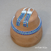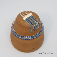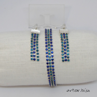 Браслет из стразовых цепочек с синими и бирюзовыми стразами.