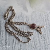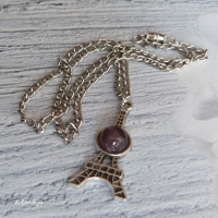 Кулон с подвеской в форме Эйфелевой башни и вставкой из натурального аметиста