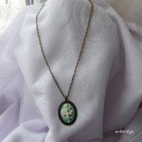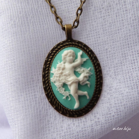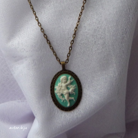 Кулон-камея из полимерной глины с изображением бегущего ангела, цвет фона - мятный